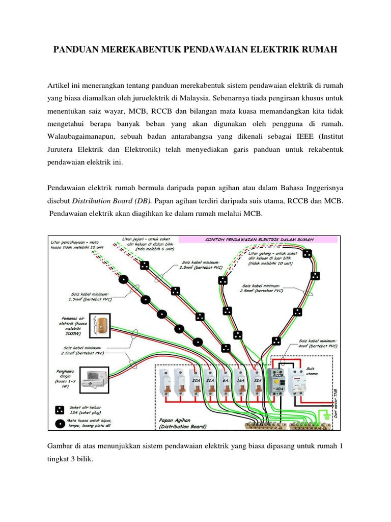 Tnb menggalakkan pendawaian elektrik sesebuah rumah dinaiktaraf kepada sistem 3 fasa sekiranya bil elektrik bulanan melebihi rm300 atau penggunaan arus elektrik melebihi 50a. Biasanya diaplikasikan di rumah kediaman (lama dan sudah tidak digunakan di kawasan perumahan baru untuk tujuan keselamatan). Terdapat 4 jenis litar pendawaian elektrik rumah iaitu litar gelang, litar jejari, pencahayaan dan litar khusus. Pendawaian elektrik diberi nilai untuk mengukur saiz dan nilai amp. Kita nampak ada kotak soket dan kotak suis dekat peralatan yang digunakan dalam pemasangan sistem pendawaian tersembunyi. Terdapat 4 jenis litar pendawaian elektrik rumah iaitu litar gelang, litar jejari. Garis panduan pendawaian elektrik di bangunan kediamanpendawaian elektrik pengguna fasa tiga contoh 2. Panduan merekabentuk pendawaian elektrik di rumah. Artikel ini menerangkan tentang panduan merekabentuk sistem pendawaian elektrik di rumah yang biasa diamalkan oleh juruelektrik di malaysia. Pada awalnya aku ada plan untuk simen kawasan tanah depan rumah ni. Gambar di atas menunjukkan sistem pendawaian elektrik yang biasa dipasang untuk rumah 1 tingkat 3 bilik. Jenis pemasangan kepekaan peranti arus baki (maksimum) kehendak 1 pendawaian keseluruhan. Selain sistem point, anda harus tahu sistem pakej yang ditawarkan oleh kontraktor atau syarikat pendawaian.